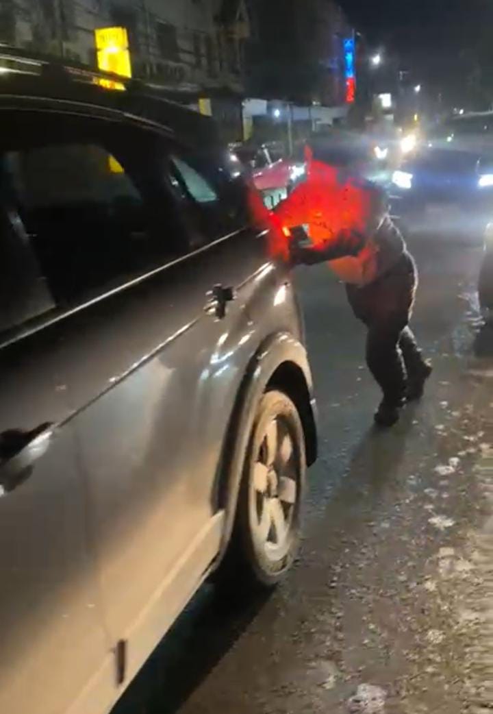 Sigap, Anggota Sat Samapta Polres Gowa Bantu Dorong Mobil Warga Yang Mogok