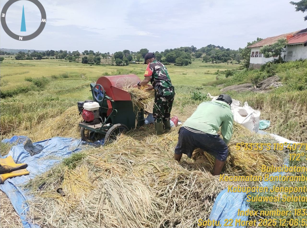 Babinsa Serka Nurdin Dampingi Petani Rontokan Padi di Bulan Suci Ramadhan
