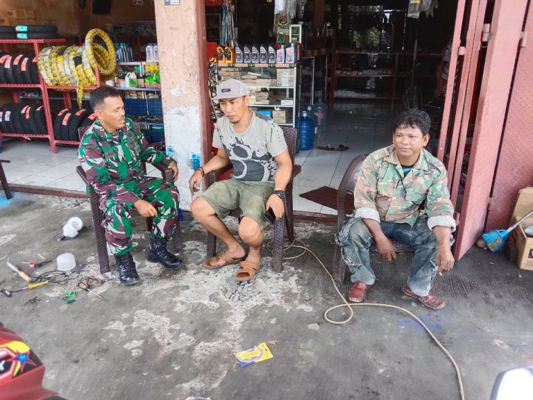 Kegiatan dimulai dengan kunjungan Babinsa ke bengkel motor yang terletak di kawasan padat penduduk. Babinsa menyapa pemilik bengkel dan para pekerja dengan ramah, sekaligus berbincang-bincang mengenai situasi sekitar, terutama terkait dengan keamanan dan ketertiban di lingkungan. Selain itu, Babinsa juga memberikan pesan-pesan terkait pentingnya menjaga keamanan dan kebersihan di sekitar tempat usaha.