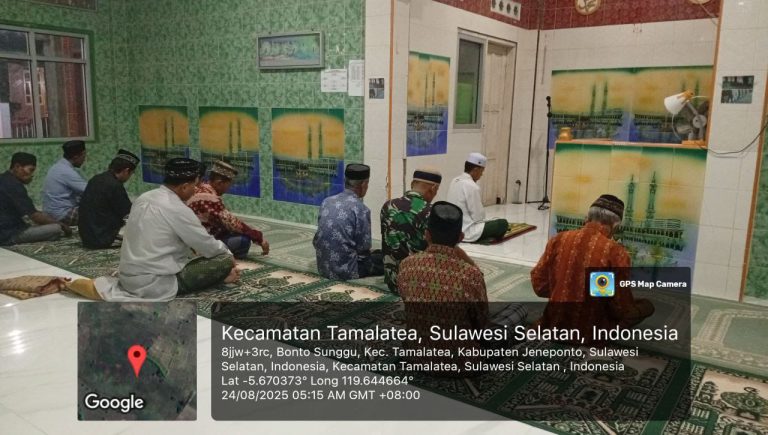 LP HAM RI News, Jeneponto – Menyatu dengan denyut kehidupan masyarakat binaannya, Babinsa Kodim 1425/Jeneponto melaksanakan ibadah sholat Subuh berjamaah di masjid wilayah teritorialnya, Minggu, 24/08/2025.