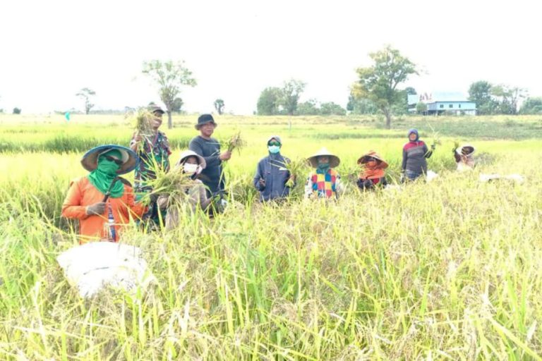 Kebersamaan Babinsa dengan petani terlihat akrab dan penuh semangat, menunjukkan kemanunggalan TNI dengan rakyat dalam mendorong peningkatan hasil pertanian di wilayah binaannya.