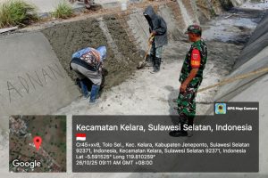 LP HAM RI News, Jeneponto – Babinsa Koramil 01/Binamu Kodim 1425/Jeneponto, Serda Agus Salim bersama petugas kebersihan Kabupaten Jeneponto melaksanakan kegiatan kerja bakti membersihkan tumpukan sampah di lokasi pembuangan sementara yang berada di wilayah Kelurahan Empoang, Kecamatan Binamu, Kabupaten Jeneponto, Minggu, 26/10/2025.