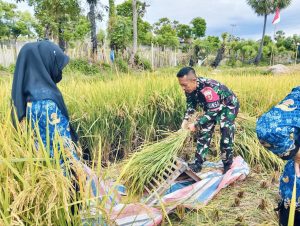 Dengan penuh rasa semangat Babinsa Serka Ilham, membantu para petani dalam melakukan panen padi, bukan hanya saat panen padi saja tetapi juga di saat penyemaian bibit padi, pengelolahan lahan sawah, perawatan sampai panen padi seperti saat ini.