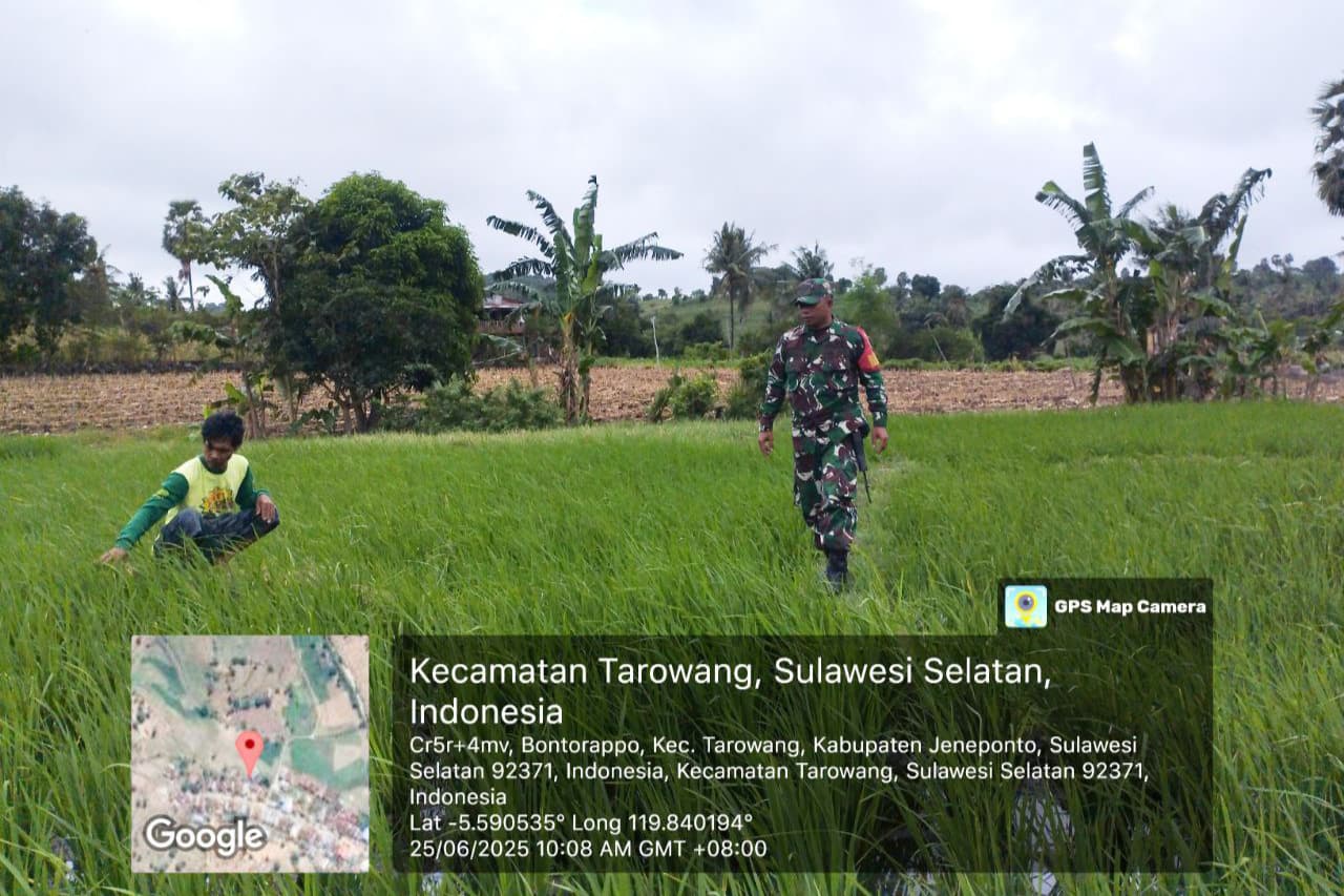 Babinsa Koramil Binamu dan PPL Kompak Dampingi Petani: Tinjau Pertumbuhan Padi di Kayuloe Barat
