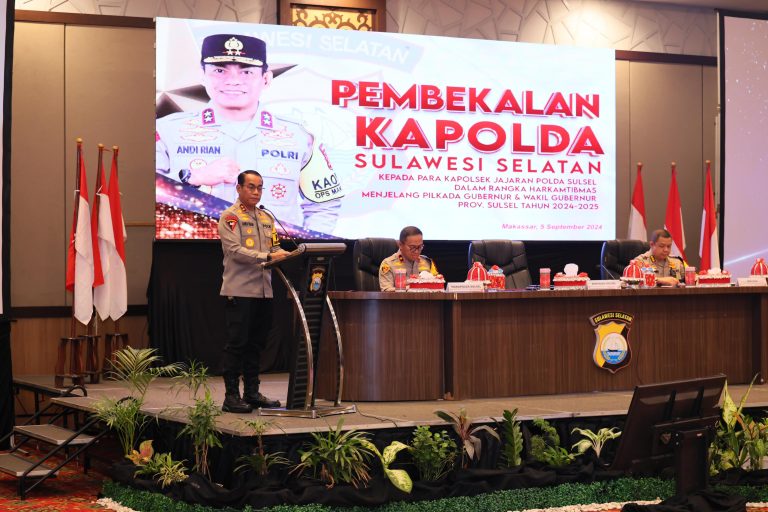LP HAM RI News, Kapolda Sulsel Irjen Pol. Andi Rian R. Djajadi memberikan pembekalan kepada Kapolsek dan Kapolsubsektor jajaran Polda Sulsel dalam rangka Pengamanan Pilkada serentak Tahun 2024.