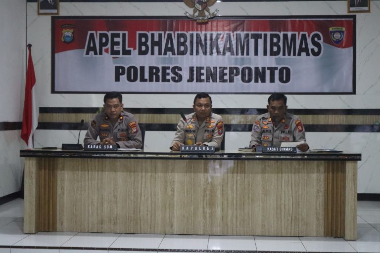 LP HAM RI News, Jeneponto – Pada hari Senin, 19 Mei 2025, Kapolres Jeneponto AKBP Widi Setiawan, S.I.K., M.I.K., memimpin apel dan analisa evaluasi (Anev) Bhabinkamtibmas yang berlangsung di aula lantai dua Mapolres Jeneponto. Kegiatan ini turut dihadiri oleh Kabag SDM Kompol Syahrul, S.H., M.H., dan Kasat Binmas AKP M. Natsir, S.Sos.