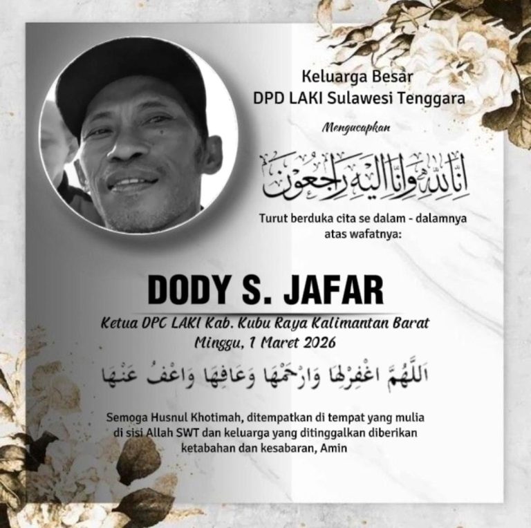 LP HAM RI News, Kabar duka menyelimuti keluarga besar Laskar Anti Korupsi Indonesia (LAKI) Kabupaten Kubu Raya. Ketua DPC LAKI Kubu Raya, Dody Sabli Jafar, dikabarkan telah wafat pada hari Minggu (28/02/2026).