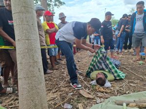 Sesampainya di lokasi sekitar pukul 13.00 WITA, keduanya menemukan korban dalam keadaan terlentang menghadap ke bawah di dekat rumah kebun. Setelah diperiksa, korban sudah tidak bernyawa.