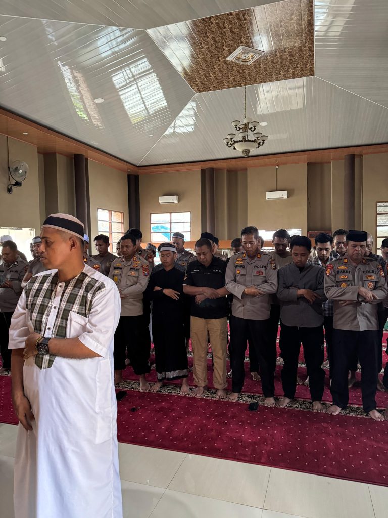 Kapolres Jeneponto AKBP Widi Setiawan, S.I.K., M.I.K. mengajak jemaah sholat ashar di masjid asy-syurti Polres Jeneponto untuk bersama-sama melaksanakan shalat gaib. Selasa, 18/03/2025