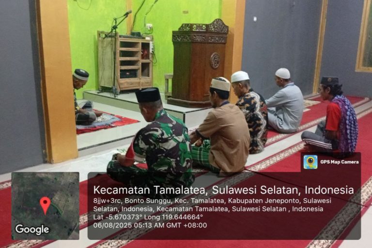 LP HAM RI News, Jeneponto – Dalam upaya mendekatkan diri kepada masyarakat sekaligus memperkuat nilai keimanan di wilayah binaannya, Babinsa Koramil 03/Tamalatea Kodim 1425/Jeneponto, Serda Ramli, aktif menjalankan ibadah Sholat Subuh berjamaah bersama warga di Masjid Desa Bontosunggu, Kecamatan Tamalatea, Kabupaten Jeneponto, Rabu, 06/08/2025.
