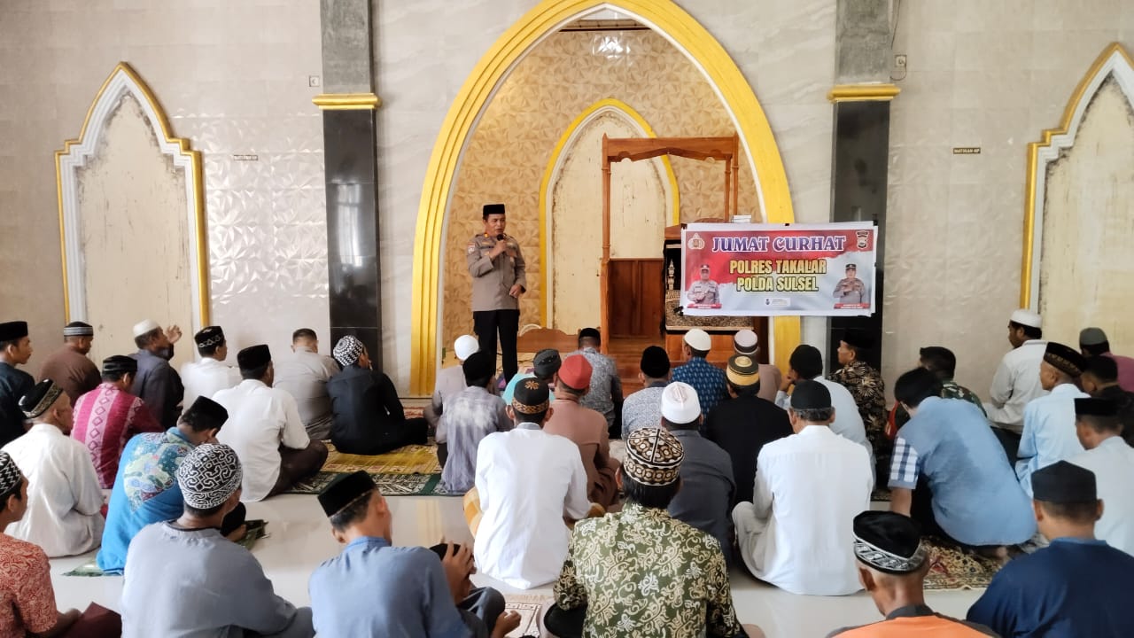 LP HAM RI News, TAKALAR – Kapolres Takalar, AKBP Gotam Hidayat, S.I.K., M.Si melalui Kasat Binmas Polres Takalar AKP Ahmad Koembara, S.H., M.H., bersama Kasihumas Polres Takalar AKP Abdul Karim serta staf Binmas Polres Takalar, melaksanakan kegiatan Safari Jumat yang dirangkaikan dengan program Jumat Curhat. Kegiatan tersebut berlangsung di Masjid Nurul Taufik, Dusun Romang Sapiria, Desa Pa’rasangan Beru, Kecamatan Galesong, Kabupaten Takalar, pada Jumat (03/01/1025)..